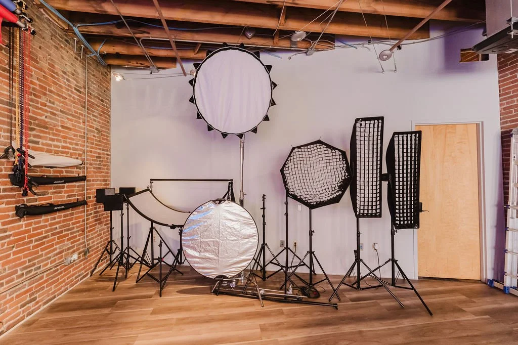 All core gear: lighting, strobes, modifiers, backdrops, podcast station, WiFi, and lounge access. Specialty add-ons available by request.